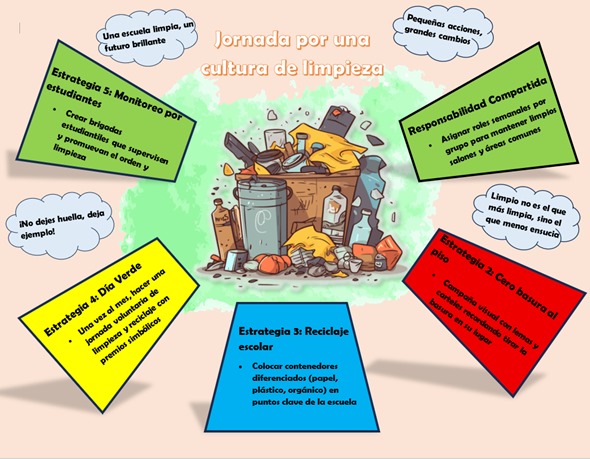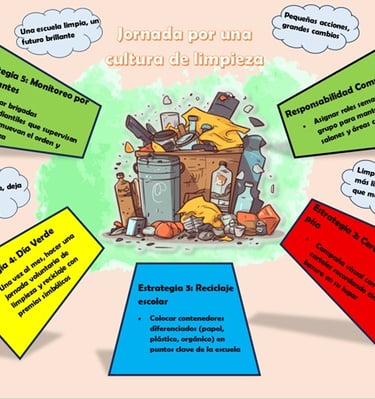 • INTRODUCCÓN: Este proyecto tiene como objetivo fomentar una cultura de limpieza dentro de la comunidad escolar, promoviendo la participación de todos los estudiantes en acciones que mejoren el ambiente del plantel. A través de encuestas, actividades y análisis estadísticos, buscamos reflexionar sobre la importancia de mantener espacios limpios y ordenados, comprendiendo que el cuidado del entorno escolar también refleja nuestros valores y responsabilidad como alumnos